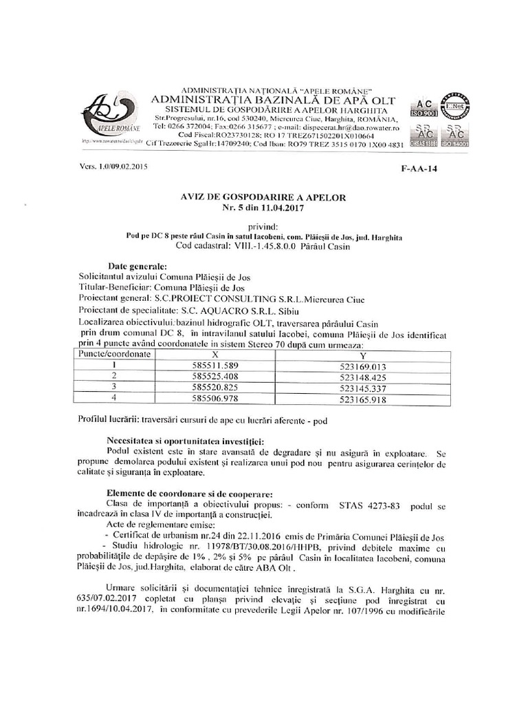 Rectifică / completează şterge adaugă tipăreşte (fără reclame) sistemul de gospodarire a apelor sa a fost accesată până acum de 2 ori de către o persoană. Ea se ocupă cu studiul ansamblului de lucrări, măsuri și activități necesare pentru: Servicii de inginerie și servicii conexe de consultanță tehnică.